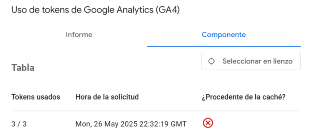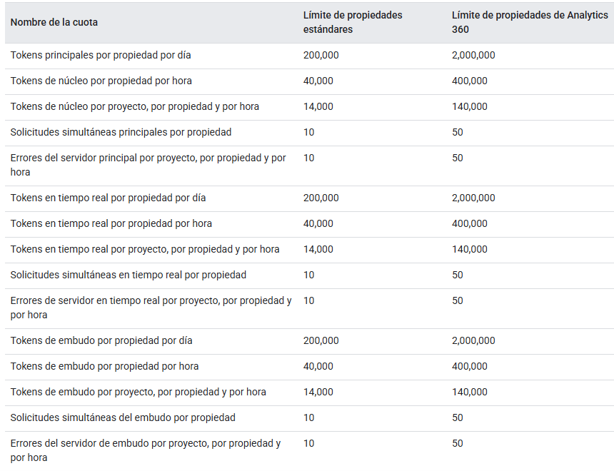 En cuanto a qué son los tokens, dicho de forma sencilla podríamos resumirlo en los créditos diarios que tenemos disponibles para gastar en la API de Google Analytics y que sirven para gestionar el consumo de cuota. En el momento en el que se acaben los tokens nos aparecerá el error de cuota.
