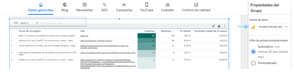Esto al fin y al cabo lo que hace es incrementar el uso del caché y evitar tener que cargar múltiples fuentes de datos redundantes, reduciendo el tiempo de carga del dashboard y al mismo tiempo el consumo de cuota.